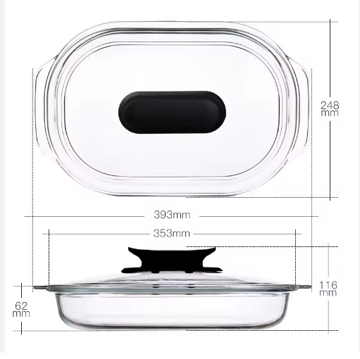 3.0L Rectangle Tempered Glass Baking Dish Easy Grip Handle Oval Glass Bakeware Glass Casserole Dish with Lid