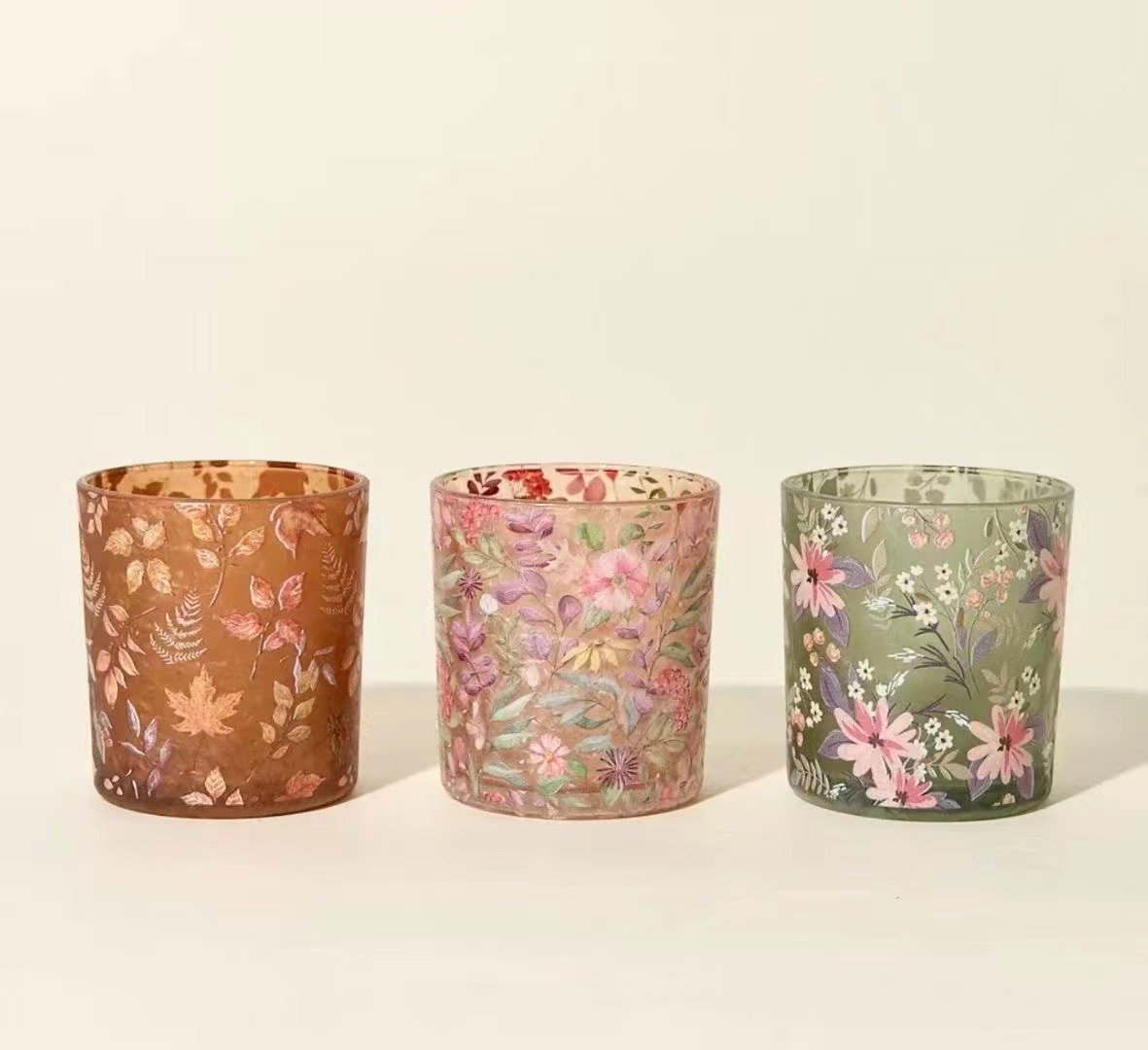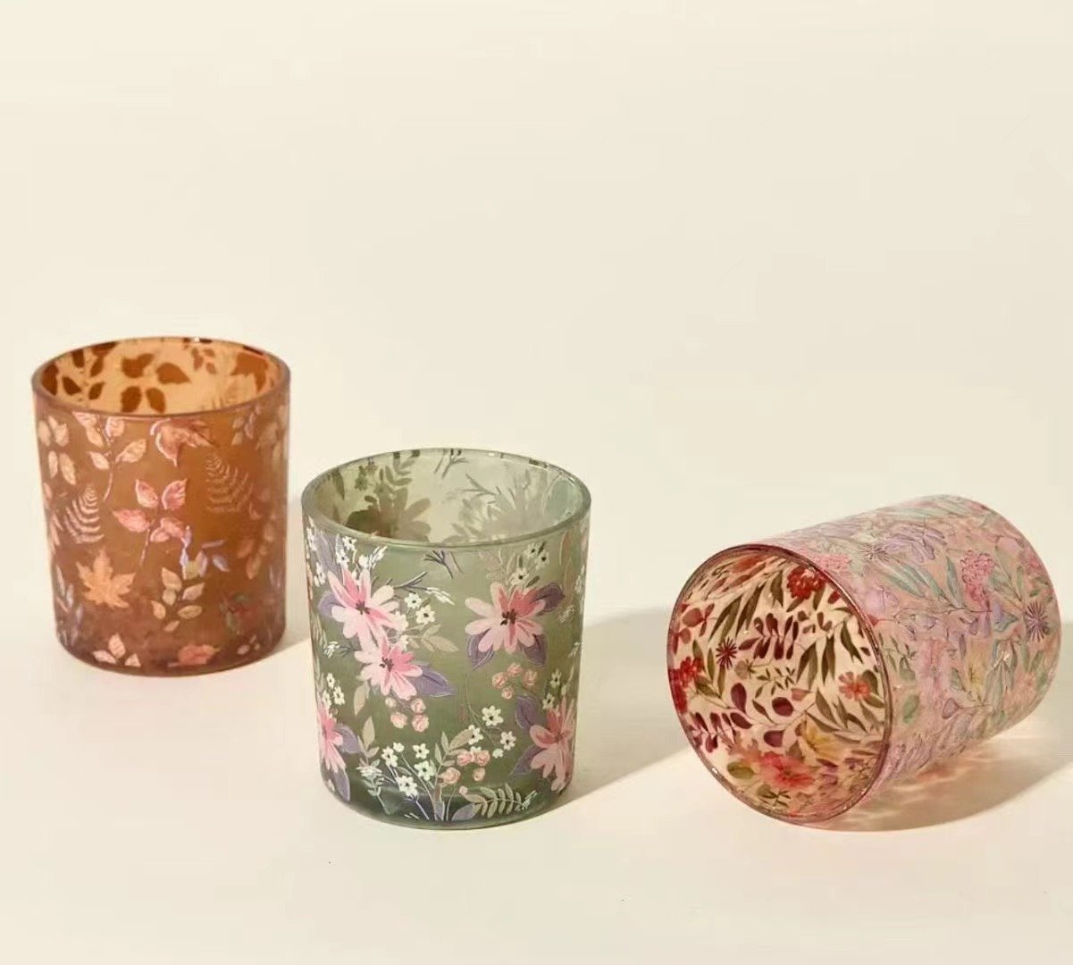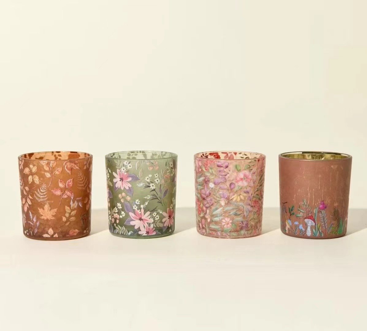 Decorative Floral Pattern Glass Candle Holder Cups for Home Décor