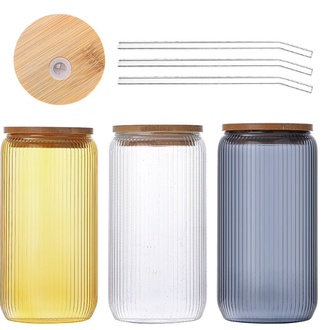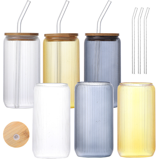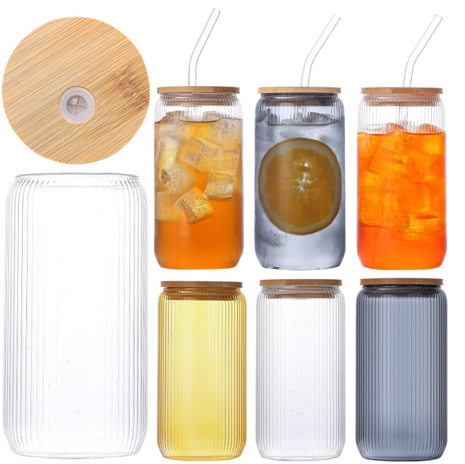 High Borosilicate Glass Coke Cup with Vertical Ribbed Design